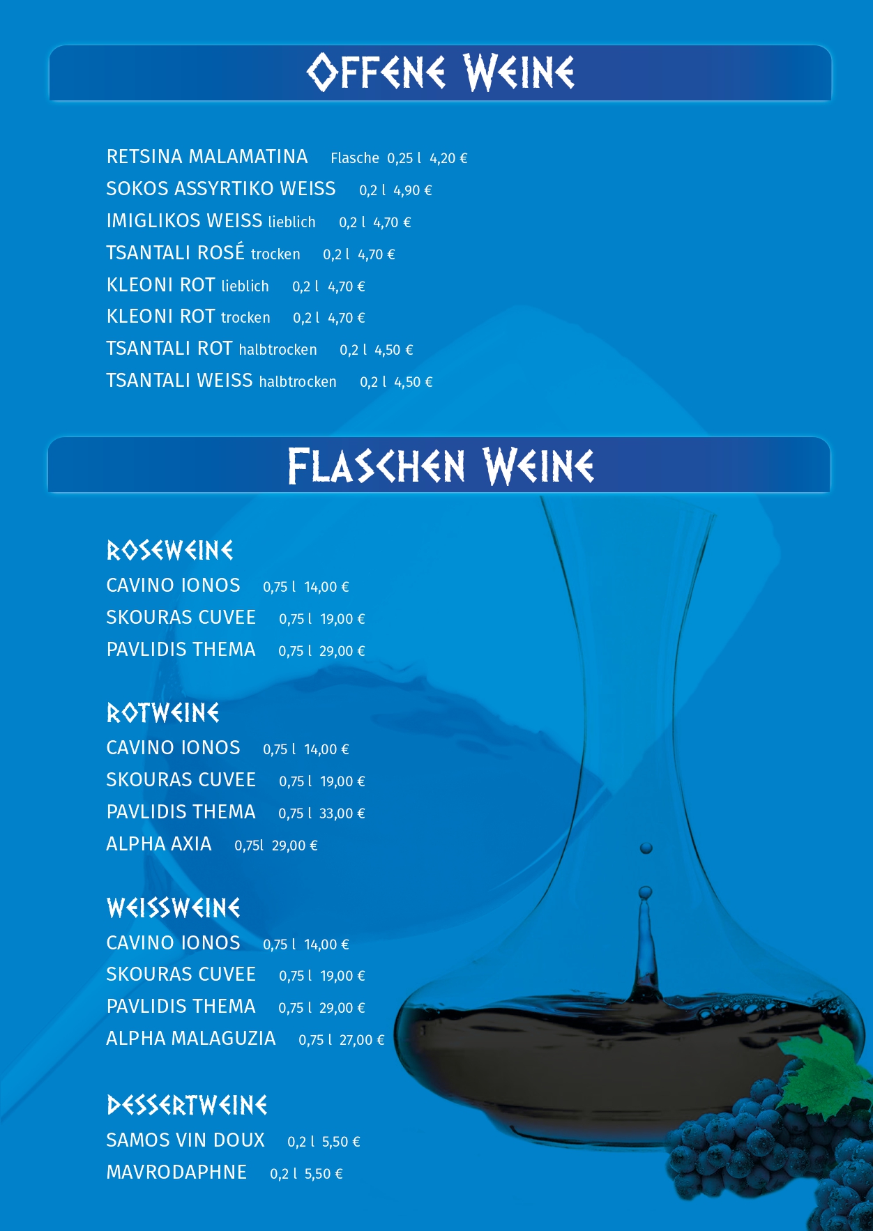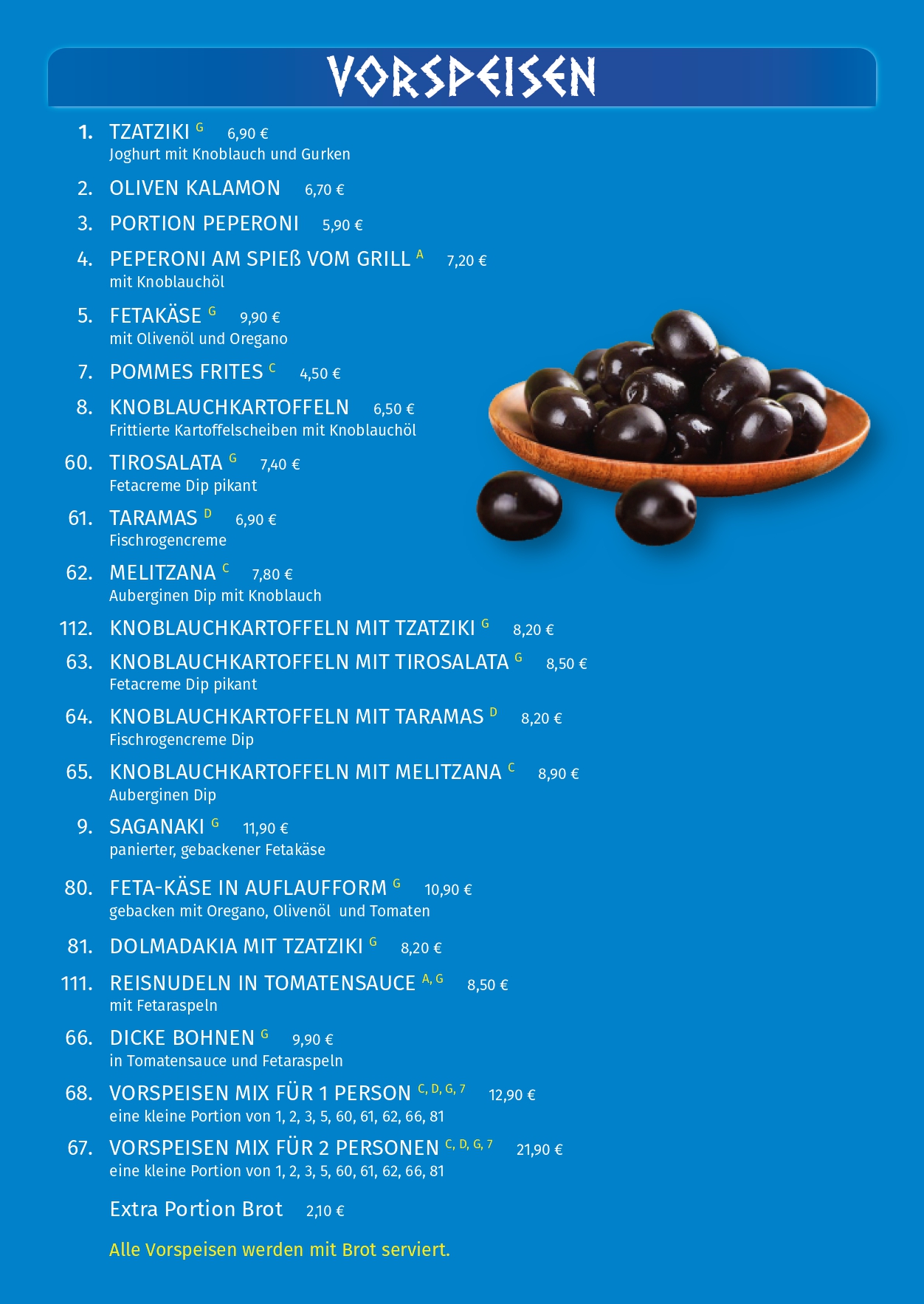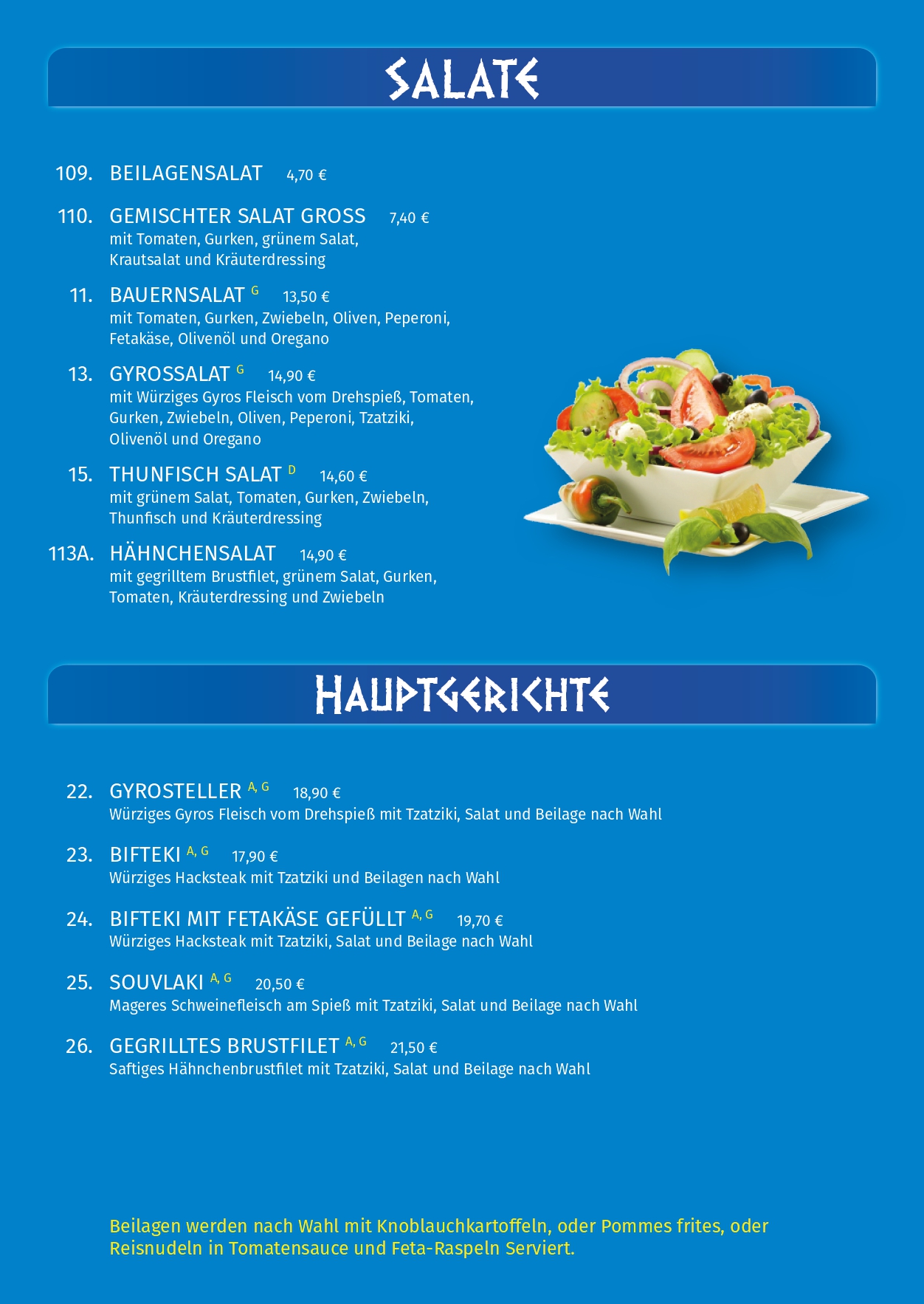 Entdecken Sie unsere vielfältige Taverna-Speisekarte und reservieren Sie gerne Ihren Tisch. Zusätzlich verwöhnen wir Sie auch mit unserem Lieferservice – Ihre Bestellung können Sie bequem online aufgeben. Bitte beachten Sie: Die Speisekarte im Restaurant unterscheidet sich von der unseres Lieferservices.